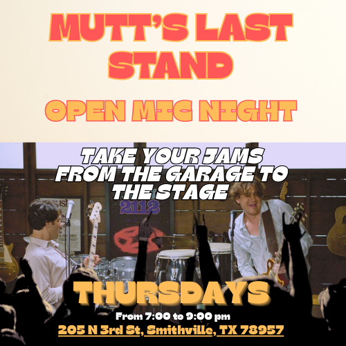 • Sign-Ups: The sign-up sheet is finalized at 6:45 PM. Slots are first-come, first-served! Message on Facebook or Instagram @muttslaststand or come in before 6:45pm to get on the performance list each week.